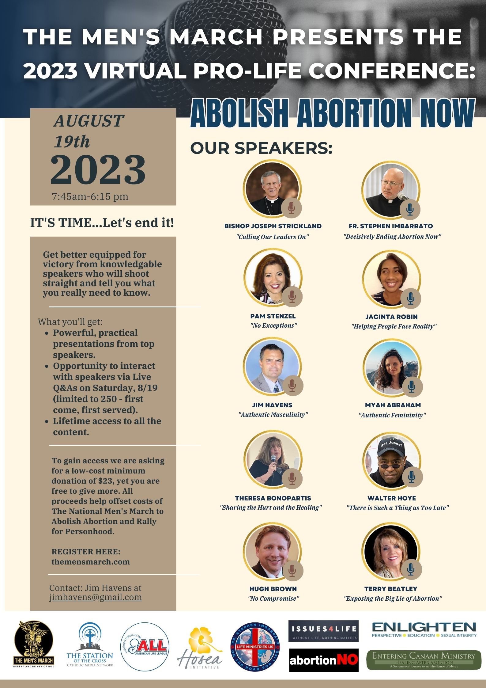 To gain access we are asking for a low-cost minimum donation of $23, yet you are free to give more. All proceeds help offset costs of The National Men's March to Abolish Abortion and Rally for Personhood.